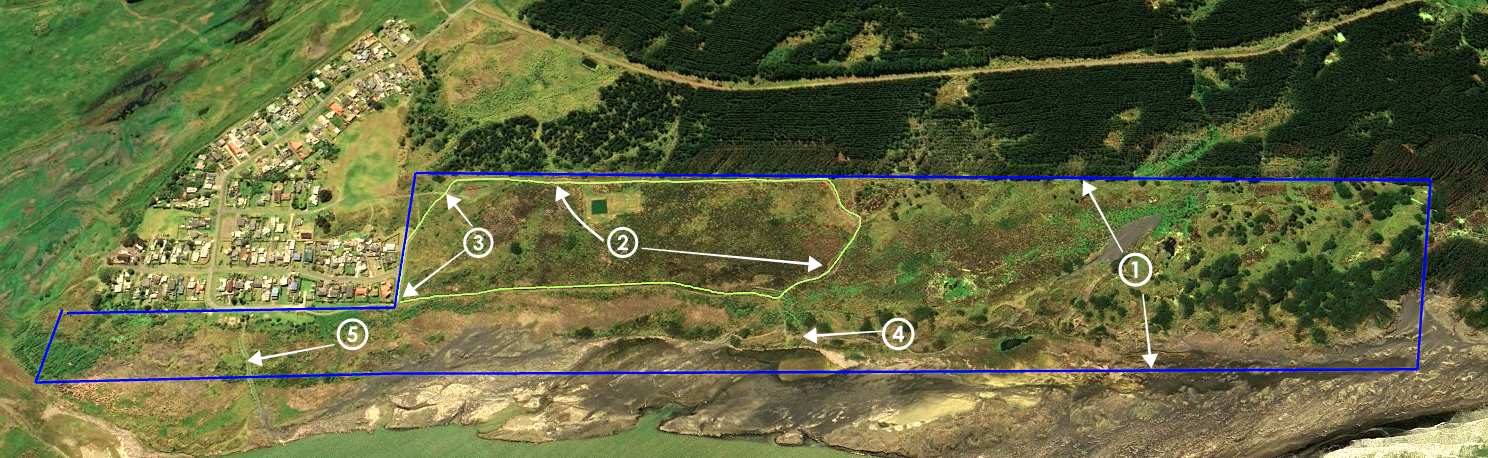 1. The boundaries of the reserve, area of 60Ha, 1.6Km from Rapaki street to southern edge, (indicative only).