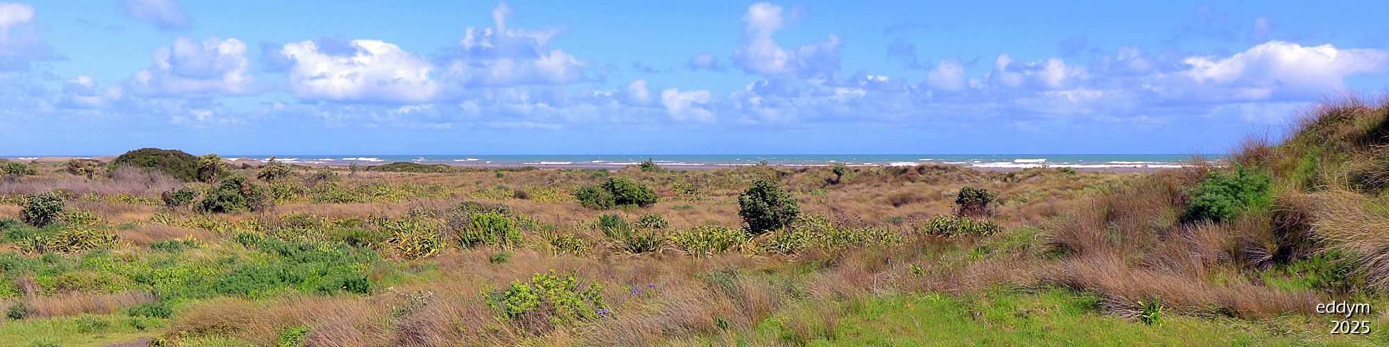 It is a typical west coast black iron sand beach and nature ensures that it is always a dynamic landscape. Strong onshore winds, high tides, crashing surf and the moving river mouth continuously relocate the sand of the beach and the dunes.