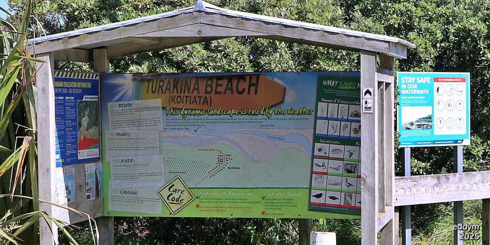 The panel was created by DOC and the Koitiata community. It was erected, together with the shelter, by community members in 2008.